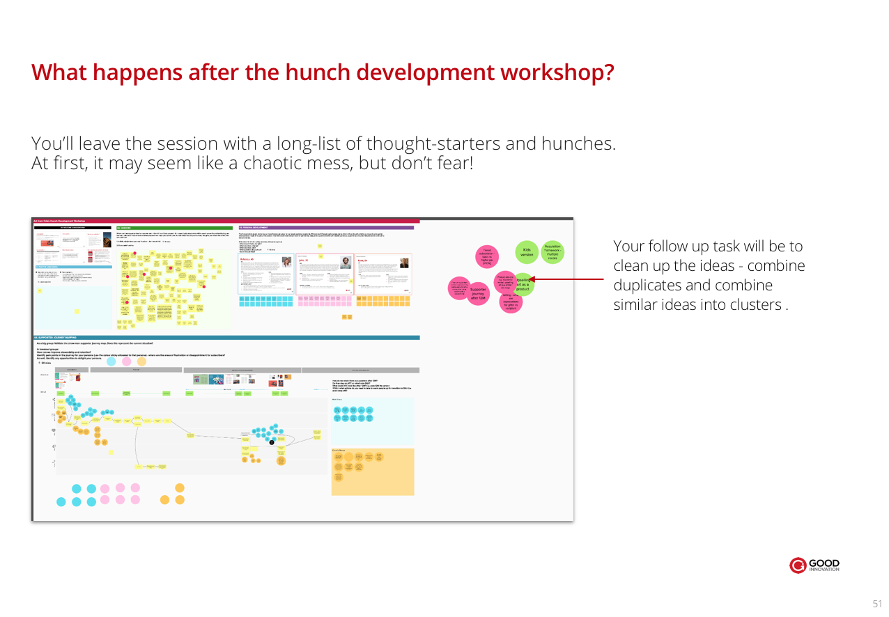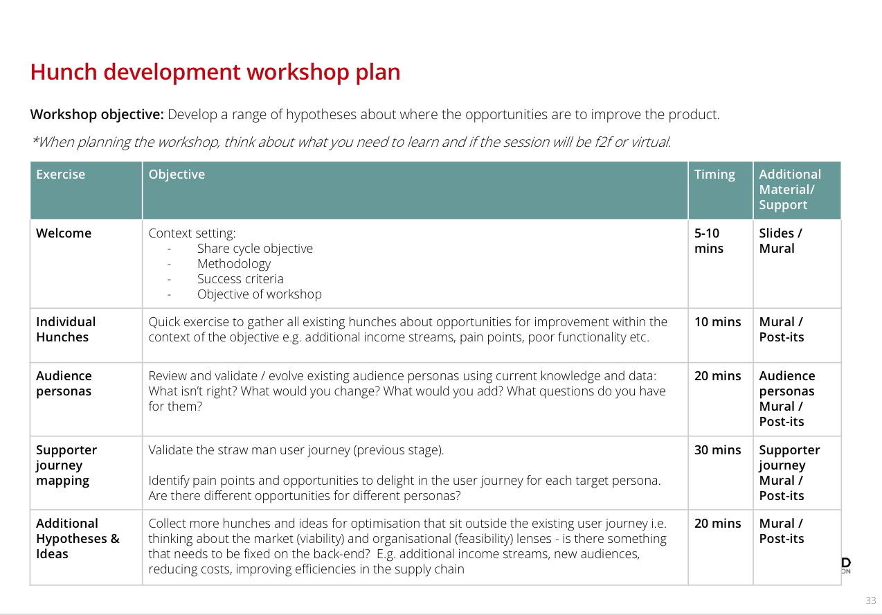 Design a session with the objective of gathering and developing a range of hunches and hypotheses about where the opportunities are to optimise the product. These hunches might be around opportunities to delight or fixing pain points.