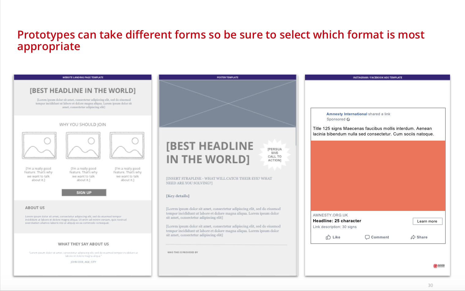 You want to build something that is enough to put in front of someone to evoke a response and get some feedback. Think of it like the 'shop window'. You don't need to invest lots of time and resource to make it perfect because you'll have to tweak it again after you get feedback. Early stage prototypes are essentially mock-ups and can take different forms: landing pages, Facebook ads, brochures, leaflets, part of a monthly pack etc.