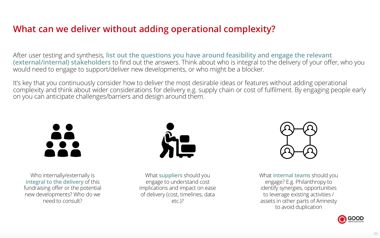 You can't only collect audience insight, you need to think about which ideas are the most feasible to deliver. What assets or capabilities do you have internally? What stakeholders do you need to engage? Are there synergies with other teams?